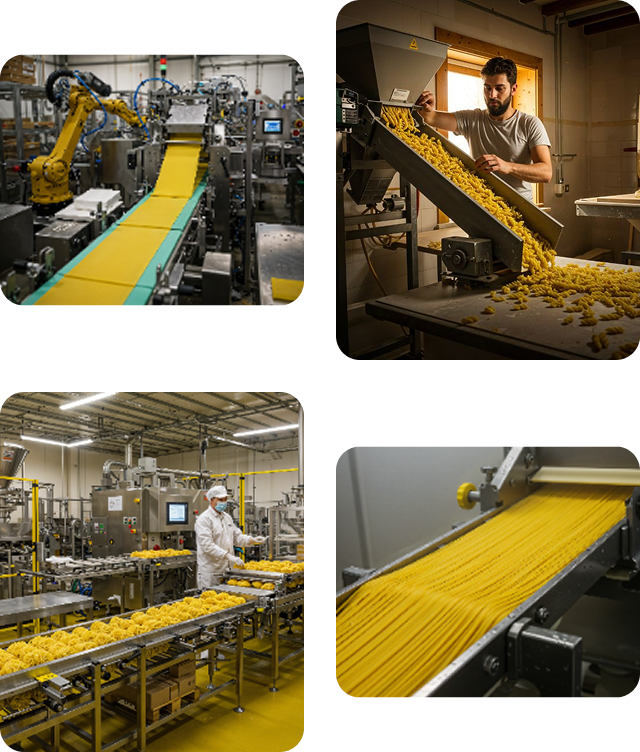 Atendemos a indústria de massas com soluções pensadas para cada etapa do processo da movimentação à expedição, garantindo fluidez operacional, conformidade sanitária e máxima eficiência no seu fluxo produtivo.